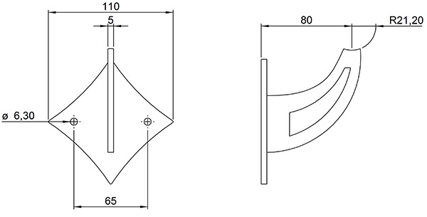 Handlaufträger gelasert, bestehend aus Platte und Schwert, je 4mm stark, - ohne Nacharbeit -, Mat. Stahl S235 roh